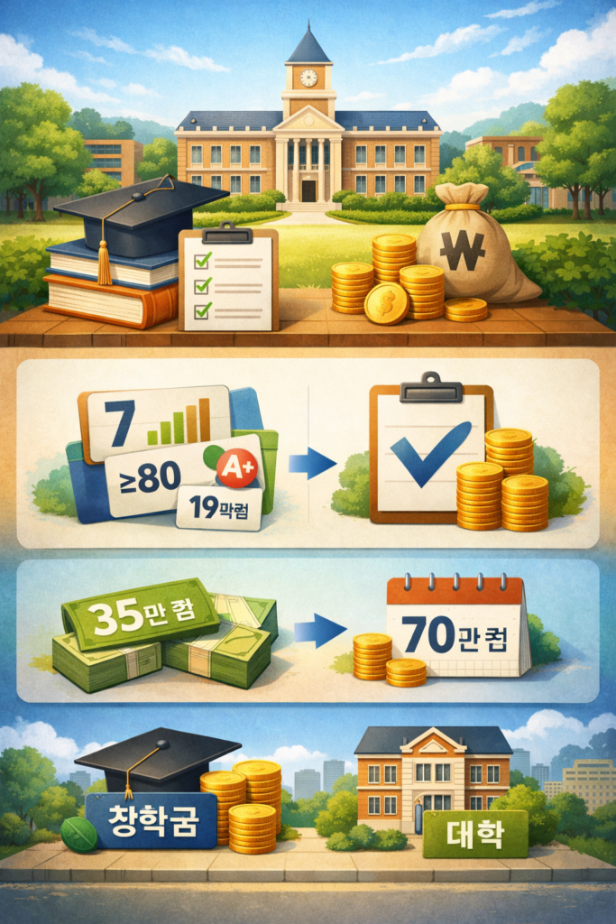 | 국가장학금 Ⅰ유형 (7구간) | 약 35만 원 | 약 70만 원 |